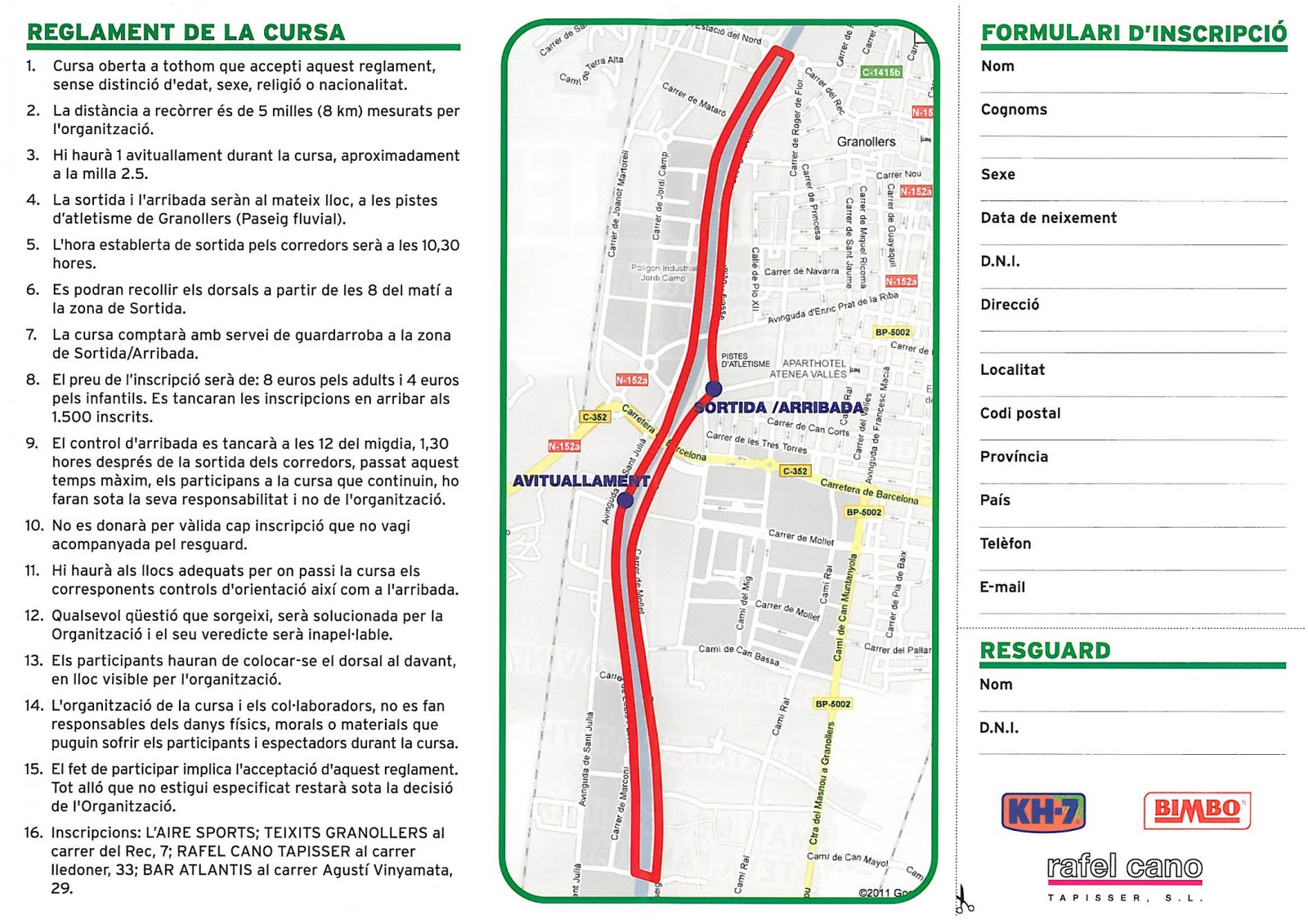 Al tratarse de una actividad gratuita, os pedimos que los participantes os apuntéis en las oficinas del Servei d’Esports (C/Voluntaris 92, nº2) entregando el documento adjunto o enviando vuestros datos por correo electrónico a esports@ajuntament.granollers.cat o por fax al 93 879 51 55.