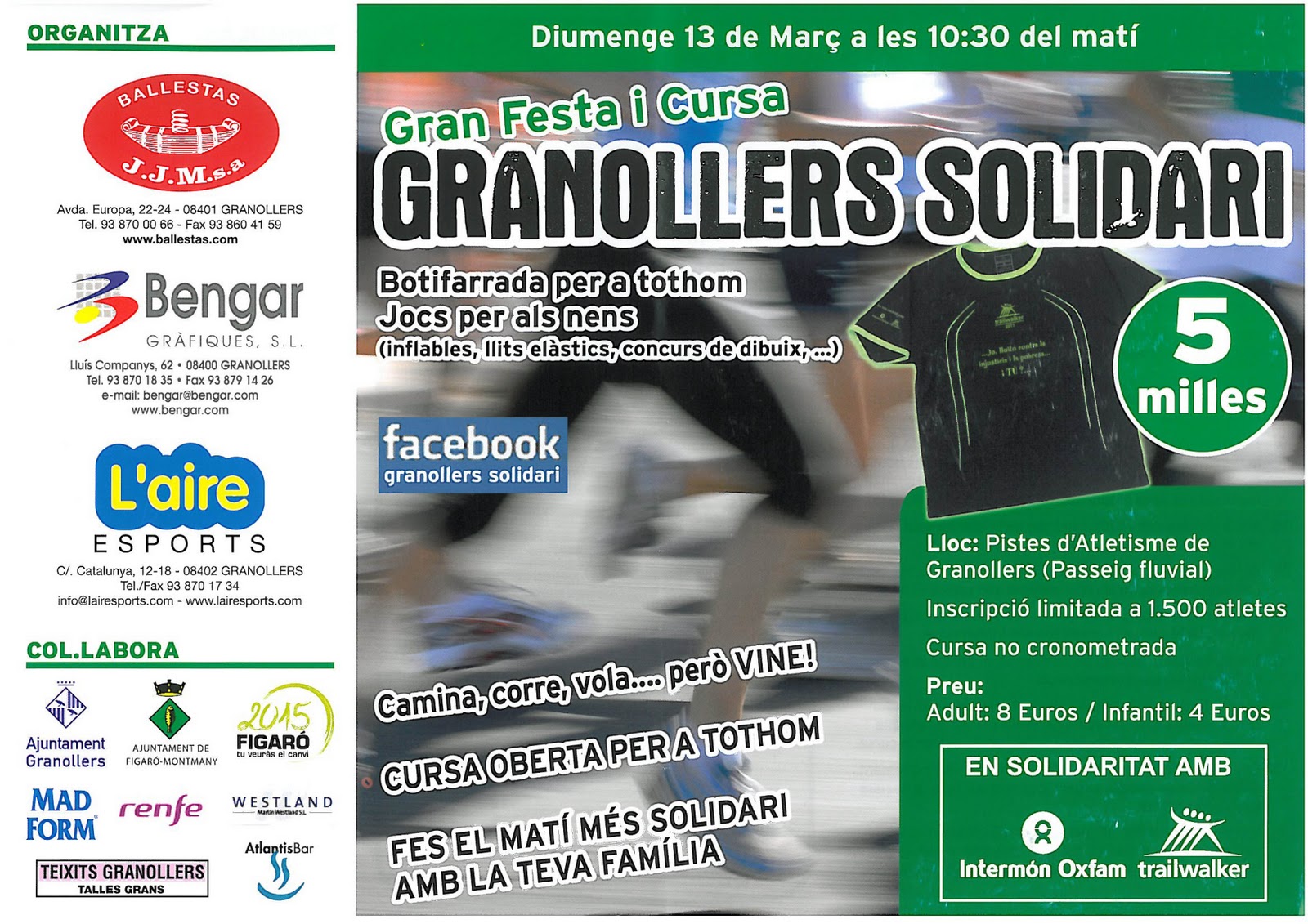 Por otro lado, os recuerdo que bastantes miembros del club están muy implicados en la preparación de la Trailwalker que organiza Intermon Oxfam y que contribuirán a esta causa que tanto merece la pena. Para colaborar podéis participar en la jornada que organiza "Granollers Solidari" el próximo 13 de marzo. Os adjuntamos los dípticos informativos y os animanos a que vengáis.